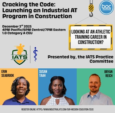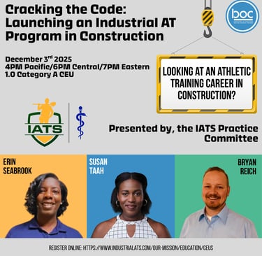 Our Practice & Standards Committee is dedicated to supporting high quality delivery of the AT care model in the industrial setting. With expert groups focused on specific patient populations, ATs are able to identify areas for emphasis and lower barriers to clinical excellence. The committee also seeks to highlight and reward clinicians who perform at a high level and improve athletic training practice in the industrial setting.